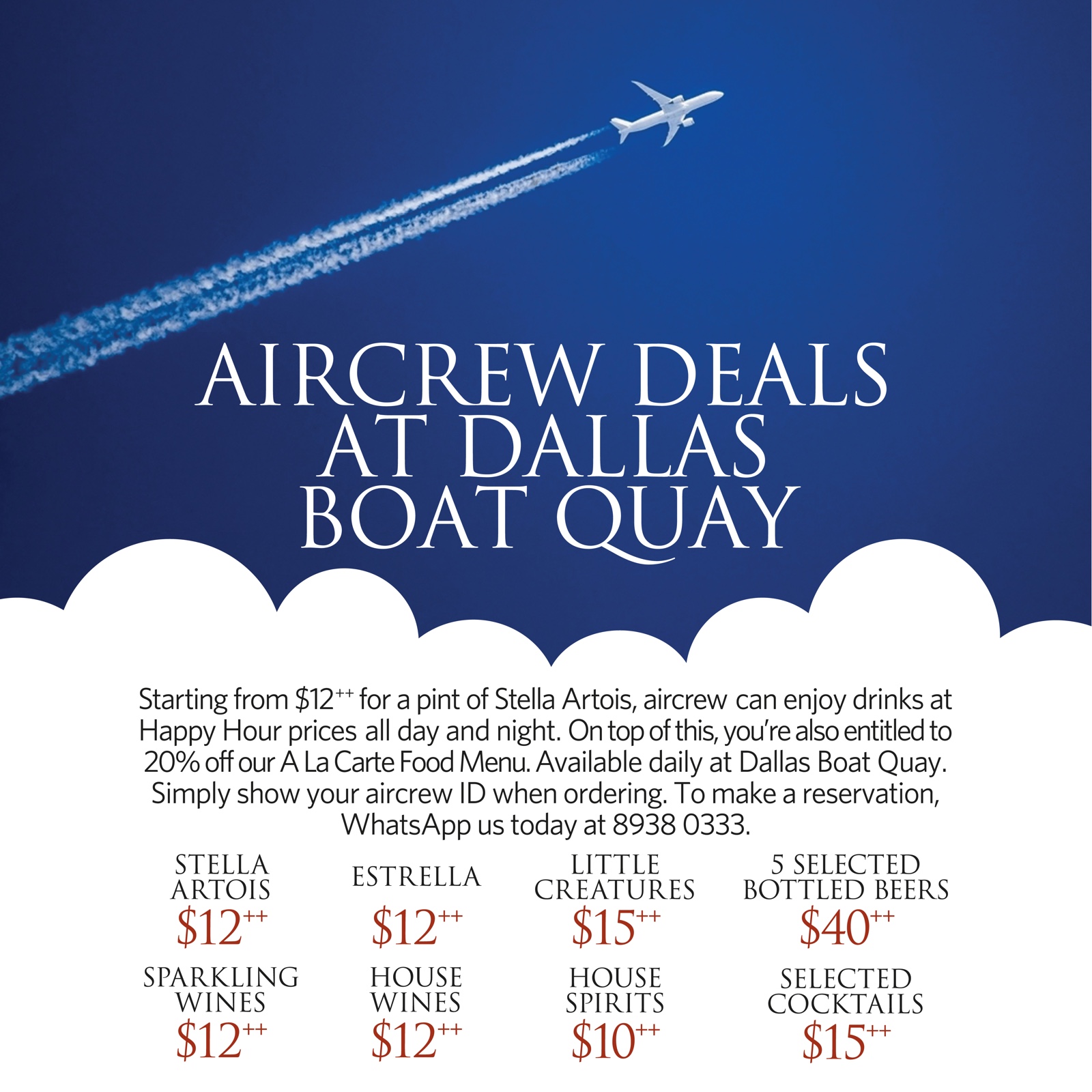 Promotionsat DallasDallas Boat QuayDallas MBS Aircrew Deals Melbourne Cup 2025 Happy Hour Bucket Happy Hour Weekday Spritz BQ Steak & Wine Aperol Spritz Promo Weekend Brunch Private Events Live Sports at Dallas Boat Quay Mexican Brunch Daily Deals At Dallas Experience dining at Dallas Make a Reservation